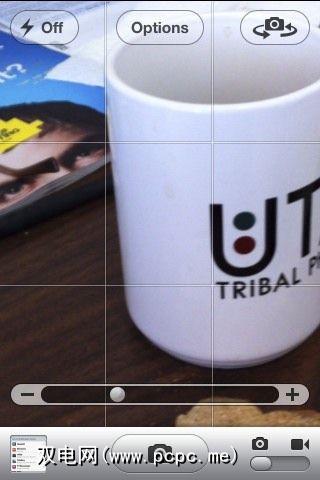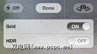 如果“相机"应用中的网格覆盖使您在拍照时感到烦恼,只需点击<屏幕上的em>选项按钮将其关闭。或者更好地学习如何使用网格来合成和/或裁剪照片。