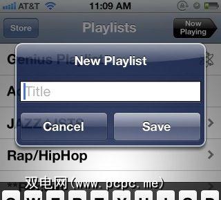 就像在iTunes中创建播放列表一样,您也可以在-在iOS 5音乐应用中转到播放列表。为此,请启动该应用程序,然后点击“ 添加播放列表…。"。为播放列表创建标题,点击保存,然后从此处点击添加音乐库中的单首歌曲以创建列表。