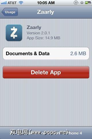 您可能会发现,在iOS 5设备上删除多个应用程序的更快方法是启动< em>设置应用,然后点击用法。从那里,您将获得所有应用程序及其文件大小的列表。点击要删除的单个应用程序,然后单击“删除应用程序"按钮。