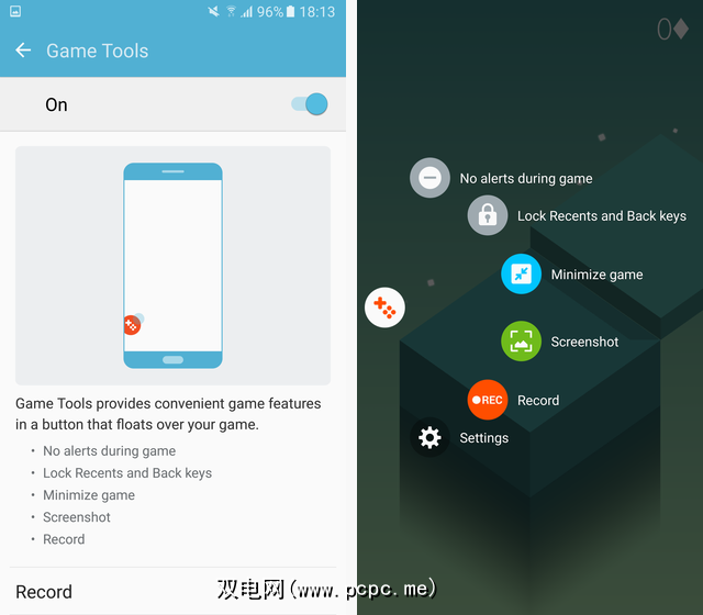 三星似乎正在寻求具有此功能的游戏玩家。游戏工具是一个微小的浮动按钮,可在您玩任何游戏时隐藏在屏幕侧面。您可以随时点击它以访问相关设置,包括在游戏中关闭警报,锁定“最近"和“后退"键,最小化游戏,拍摄屏幕快照或记录会话。