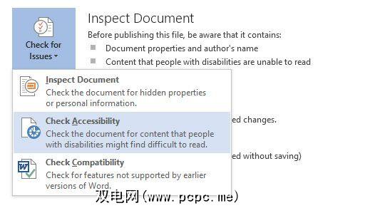 要运行并修复文件中的问题,请单击检查问题>检查可访问性。