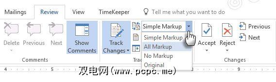 如果您认为文档难以阅读,请打开简单标记。视觉混乱将消失,并且边缘附近只有红色的垂直线将指示已进行任何更改。 Word显示一个用于注释的小气球。