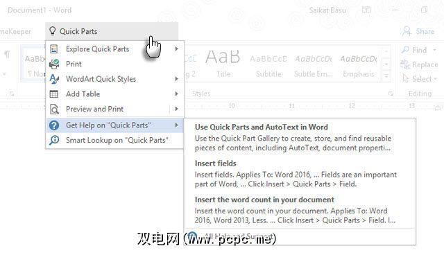 此Microsoft Office支持文章简要解释了不同类型的快速零件。