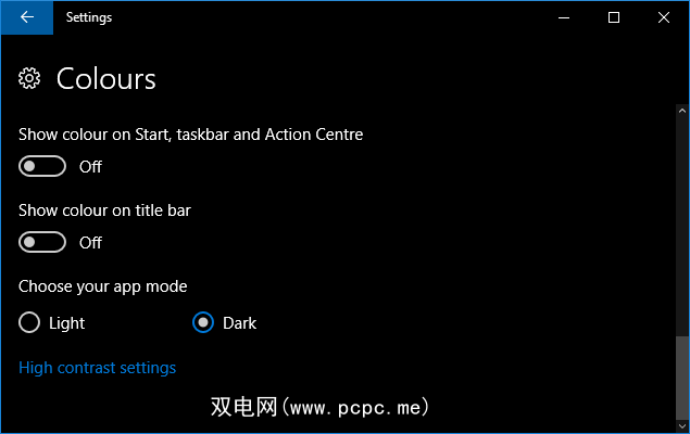 此“设置"页面上的另一个新选项是在标题栏上显示颜色。将其滑动到打开可使窗口顶部的水平栏与您选择的强调颜色匹配。