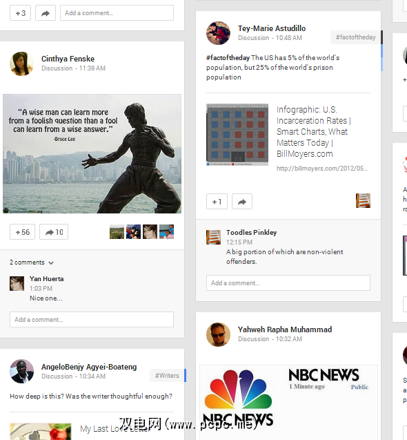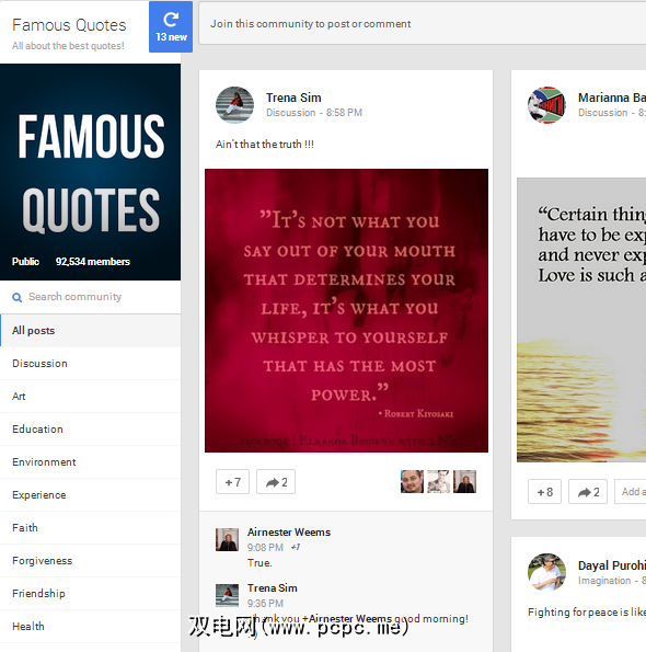 一次您开始在其中一些社区中冲浪时,很快就会发现,这是当今大多数行动都在Google+上进行的地方。有一些非常有趣的报价,帖子,图片,视频和一些对话,您可能无法在常规Feed中找到它们。社区似乎仍然缺少您在Facebook上找到的更长,更详细的对话和辩论,但是我仍然认为这会随着时间而来。