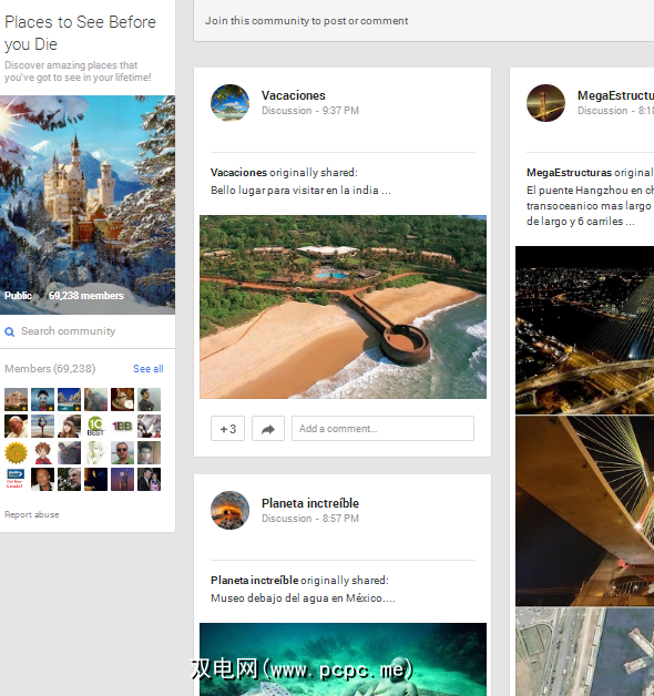 我发现自己每天回到的Google+社区确实很另类。例如,“去世前必去的地方"永远不会令人失望。它充满了来自世界各地的奇特,奇异和奇妙景点的图像,您一看照片便会真正想去的地方。