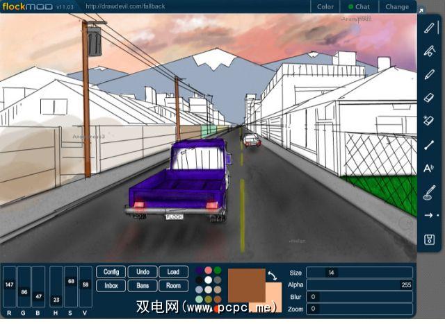 简单地说,Flockmod是一个在线协作绘图应用程序。有一个仅限Windows的桌面版本,但是在浏览器中运行它更方便,特别是如果您打算与Linux或OS X用户一起使用时。 Flockmod不需要帐户,但是如果要为绘图板注册永久URL,则应创建一个帐户。