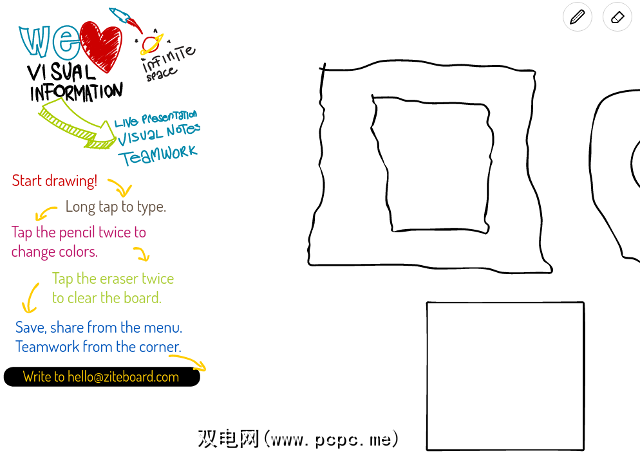 仍然免费这个版本对于一个小型团队来说应该足够了,特别是如果您一次不需要多个板时。关于Ziteboard的一个很酷的事情是它可以识别您要绘制的形状,因此,如果您的手摇晃,它将为您“自动完成"圆圈和正方形。除了草绘外,您还可以用它来画照片或在板上键入文字注释。