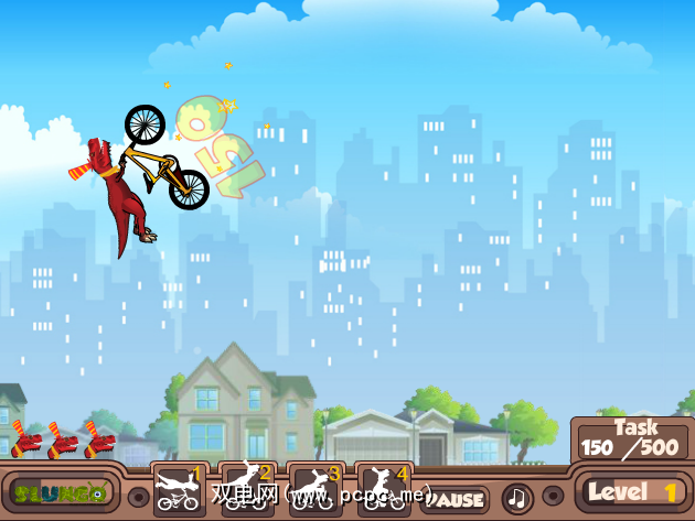曾经想过霸王龙如何骑自行车吗?我也不。但是有人做到了,他们用它创造了一个游戏。要使用笨拙的高顶帽子和围巾让这只恐龙骑这辆自行车,请使用箭头键。但是,数字1、2、3和4也使他做出了特殊的把戏。这场比赛的不利之处在于,在比赛重新开始之前,他只有3个“生命",并且没有最快的“重新开始"。总而言之,这是一个有趣且有趣的游戏,尽管我开始明白为什么大多数T-Rexes不骑自行车,因为它们是笨拙的不平衡生物。
