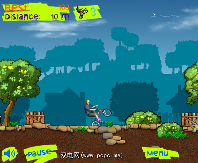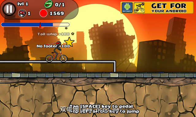 是的-名称很简单。但就游戏的名称和概念而言,它确实很不错。图形还不错,这是一个让人上瘾的游戏。您可以使骑手完成多个级别的技巧,然后根据完成技巧的时间来衡量。您可以使用四个箭头键以及空格键轻松地控制骑手,以将骑手旋转180度。