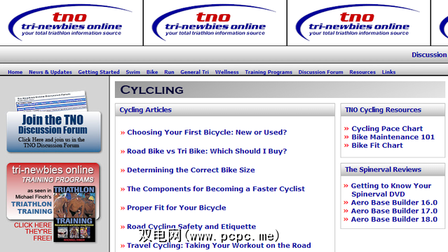 TriNewbies.com不仅是骑自行车,而且是铁人三项。但是,由于自行车是这项运动的重要组成部分,因此这里有很多关于自行车的内容,并且主要面向初学者。就本文而言,我已链接到该网站的“骑行"部分,其中有许多文章介绍了如何选择您的第一辆自行车,如何正确安装自行车,骑车安全性,通勤等诸多方面。还有免费的自行车清洁和维护手册。