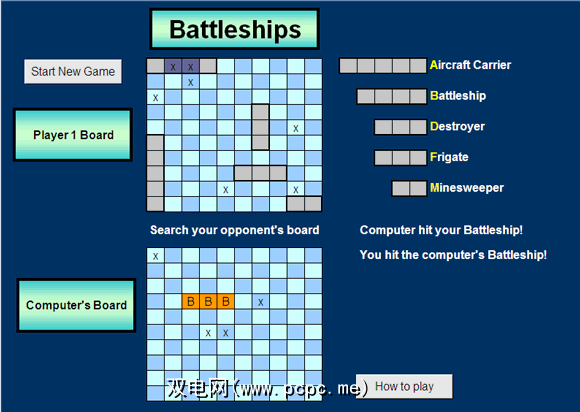 我们已经介绍了一些Excel游戏,它们使用了无聊的电子表格并将其转换进入游戏平台。您可以下载压缩文件并使用电子表格将其打开,然后将其与Excel“代码"相对应。每艘船都由成排的牢房代表;例如5格代表航空母舰,4格代表战列舰。