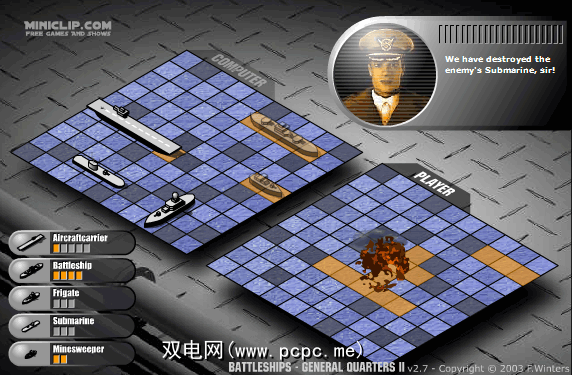 在线Flash游戏简单却有趣。在“战舰:一般宿舍"游戏中,部署您的船只并发射大炮。该板是3维的,具有清晰的爆炸效果。然后是您的执行官,他会在每次命中之后劝诱您进行反击。游戏还可以在Miniclip上玩。
