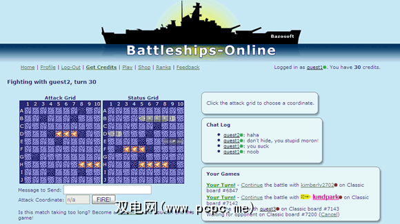 您还可以使用3个来宾帐户中的任何一个作为来宾来玩,这限制了您总共可以玩5场。您必须输入单元坐标才能攻击和下沉船只。
