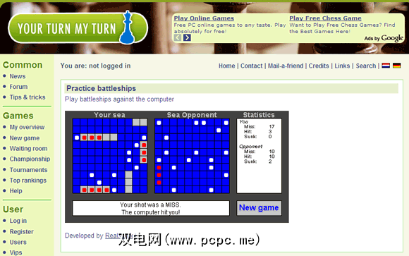 您可以在两种游戏类型(经典和 Mayhem )。将您的游戏拖放到蓝色的10×10网格中,然后等待某人加入您对阵一艘战舰。在该网站上进行注册后,您可以与世界上任何人同时玩5场游戏。