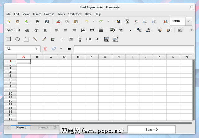 数字默认为自己的格式,但是它可以打开其他应用程序创建的电子表格。界面类似于AbiWord的界面,尽管图标主题使它感觉有些过时。