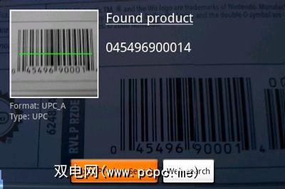 启动该应用程序,您会在屏幕中间看到一条类似激光的红色线条。只需将条形码完全放在屏幕中,红色线穿过中间即可。保持稳定30秒钟左右,然后条形码扫描仪将为您提供打开产品搜索或网络搜索的选项。这两个选项都可以引导到Google,所以我建议进行网络搜索。