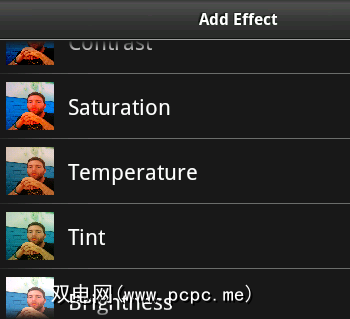 除了可以在对比度,亮度等方面更改照片(请参阅左侧的屏幕截图,以获取示例)之外,您还可以添加有趣的特殊效果,例如文字气球,标题,图形,色彩校正和突出显示。只需将手指移到屏幕底部的栏上,即可增加或减少所需的特殊效果,并实时查看照片。