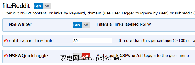 将第一个选项NSFWfilter切换为ON,这就是您要做的所有事情。现在,所有标记为NSFW的帖子和子目录将在浏览时自动隐藏。