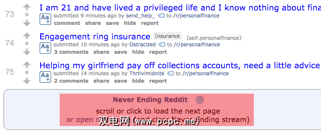 如果您不谨慎的话,我想强调的最后一个功能可能会降低您的工作效率,但这确实使浏览Reddit变得更加容易:结束页面加载。无需单击“下一页"!只需继续滚动即可。