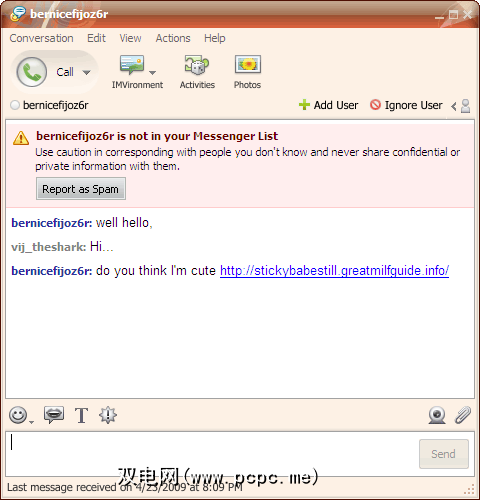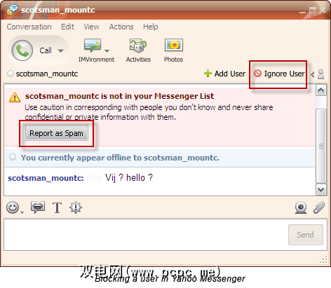 Yahoo拥有忽略用户或举报为垃圾邮件,这样他就不会再打扰您了。 GTalk具有 Block 用户选项。使用此选项可以避免不必要的信息反复发送给您。聊天软件中的默认安全设置往往比较宽松。从而使您容易受到攻击。检查聊天客户端的设置和首选项,以应用更严格的权限控制。