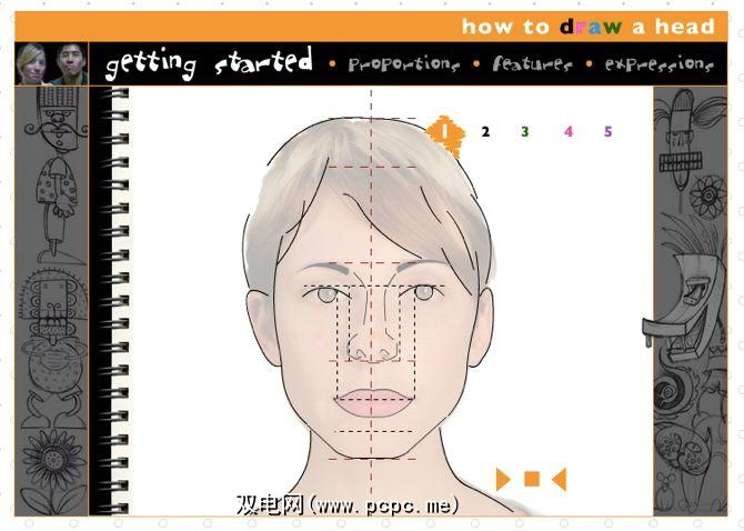 输入基于Flash的视频课。您可能讨厌Flash,但此处的动画质量很高。这只是关于一个主题的逐步教程-如何画头。但是,这很有启发性,因为您将学习有关面部比例,表情和素描基础的所有知识。