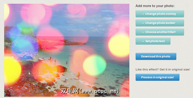 只需选择效果,上传照片,然后由网络应用即可完成。过滤器后的编辑选项有限;您可以添加文本并更改边框,但是只能添加其他内容。