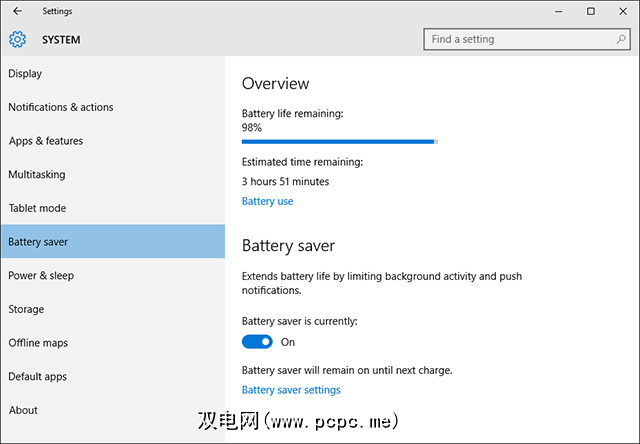 这是通常的解决方案可以延长Windows的电池寿命,因此,如果您的设备在两次充电之间已经使用了很长时间,那么Battery Saver会使它的寿命更长。