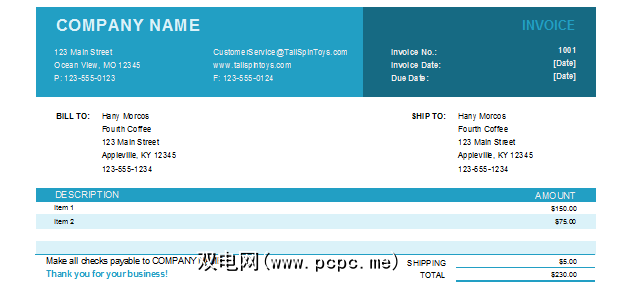 可以与Excel一起使用的Microsoft基本发票是一种很好的方法使任务保持简单。输入您的公司信息和发票详细信息,然后让模板为您计算价格。