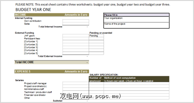 TidyForms具有适用于各种类型项目的多种预算模板。通过Microsoft Excel的年度预算模板,收入,费用,薪水和差旅费用都可以轻松地进行编辑。