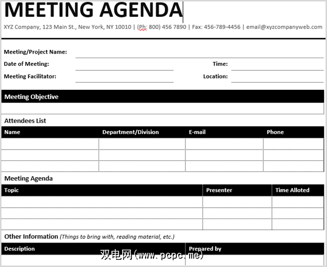 一个永无止境的议程是Microsoft Office模板在线提供的优雅,正式的模板字。拥有整洁,结构化的外观和必要的信息,您不会出错。