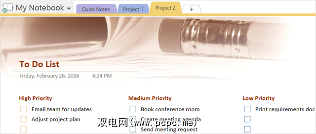 Microsoft OneNote提供了三种类型的满足您需求的任务列表模板。从简单列表到优先列表,您只能选择其中之一或全部。