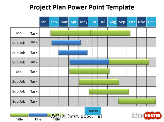 例如,当您需要为了定期显示项目的进度,SlideHunter的此模板可以完成它。光滑的甘特图模板具有可调整的颜色和全面的时间轴,效果很好。