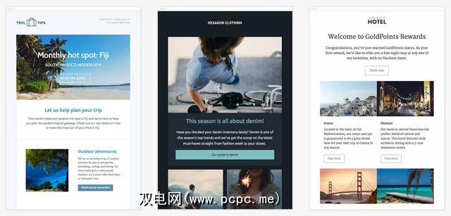 具有多种选择,可选的自定义功能以及拖放编辑器Campaign Monitor具有高质量的新闻稿模板,使您的通讯具有专业外观。