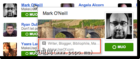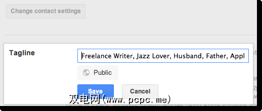 Google+用户可能并不总是点击进入您的帐户个人资料,因此让他们知道您的最佳方法是在个人资料中添加标签行。当Google+用户将光标置于您的姓名上时,您的标语将出现。