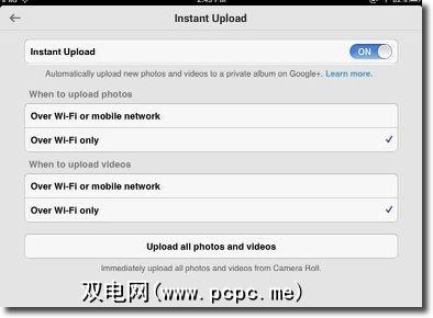 说到照片,如果您在iOS或Android设备上安装了Google+,则可以点击在应用程序的设置上,然后点击“ 何时上传"按钮,然后启用该功能,该功能将自动将设备中的所有新照片和视频上传到私人相册中