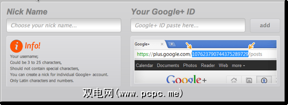 Google无法提供创建个性化Google+ URL的方法。因此,基本上,您的个人资料网址由一长串数字组成。但是,这个方便的小gplus.to网站可让您创建一个昵称,并将其添加到简短的Google+ ID中。