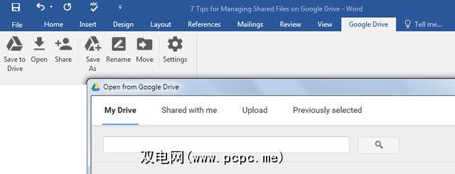 安装该加载项并授予其访问Google云端硬盘文件夹的权限。加载项在功能区上显示为附加选项卡,在“保存"屏幕中显示为新位置。