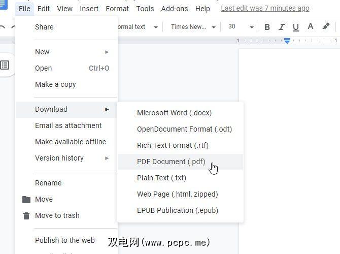 如果您有想要转换为PDF的Google文档,请在文档中打开该文档。打开后,单击文件>下载> PDF文档。