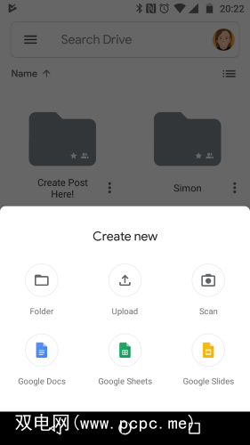 要开始使用,请下载并打开云端硬盘应用。然后,点击出现在控件上方的加号图标。在出现的弹出窗口中,点击扫描。为要扫描的照片拍照,云端硬盘会自动将其转换为PDF文件。