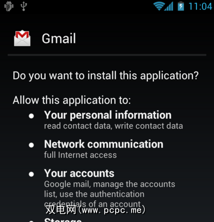 很明显,Google与您制作自己的恶意软件应用程序的普通黑社会有很大不同。我只是使用了Gmail示例,因为这是第一个出现的示例。但是正如您所看到的,每个应用程序都准确地显示了他们将要看的内容-并且绝大多数人甚至都没有想到就单击“接受"按钮。