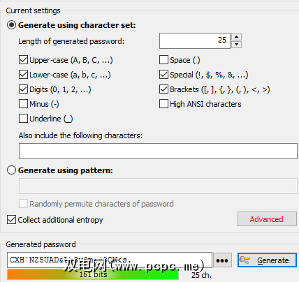 我们以前有指示您存储我的所有密码,其中包括密码生成器。只需指定密码的长度和所需的字符,然后单击生成按钮即可。您将以“位"的形式获取密码及其强度指示。