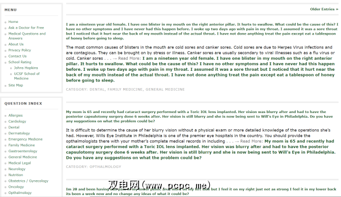 MD Talks看起来有些陈旧,但其中包含大量信息。单击左侧导航栏中的免费咨询医生,您将进入可以提出问题的表格。