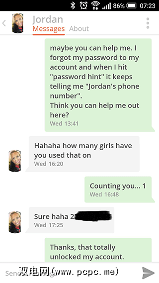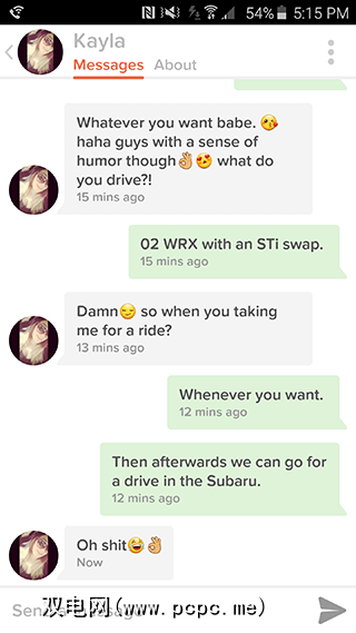 她为您扫过了。您只能向那些“接受"您个人资料的人发送消息,这意味着您只能对已经决定给您机会的女孩尝试接送服务。您已经和她“在一起"了,所以不要害怕全力以赴。