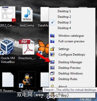 如果要快速浏览所有这些内容,只需右键单击任务栏中的DexPot图标,然后选择“ 桌面管理器" 。