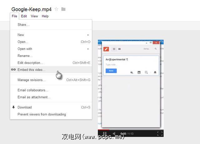 4。在Google Drive Viewer页面上,选择文件-嵌入此视频。将嵌入代码复制粘贴到您的博客上。