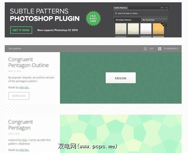 Subtle Patterns的简约纹理由挪威的交互设计师和概念开发人员Atle Mo策划。他喜欢保持简单,这就是为什么400种可用模式中的大多数都是“微妙的"。所有模式都免费供个人和商业使用。
