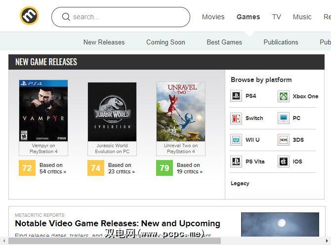 如果您不想涉足评论而只想快速得分看看游戏是否值得玩,那么Metacritic就是您的最佳选择。它本身不是评论网站,而是汇总各个游戏评论网站的得分(类似于电影的烂番茄)。