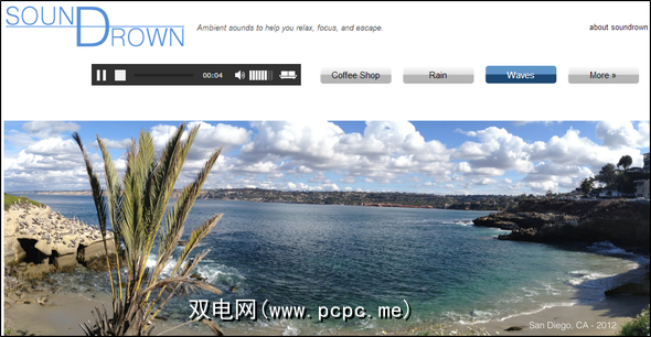 SounDrown 具有雨声与Rainy Mood一样,但不只是下雨,它还具有其他环境的声音,例如咖啡店,海浪在海滩上撞击,火车、,、白噪声,喷泉甚至是孩子。界面当然要取决于Rainy Mood的质量,但是如果您想要更多种类的声音,那是一个不错的选择。