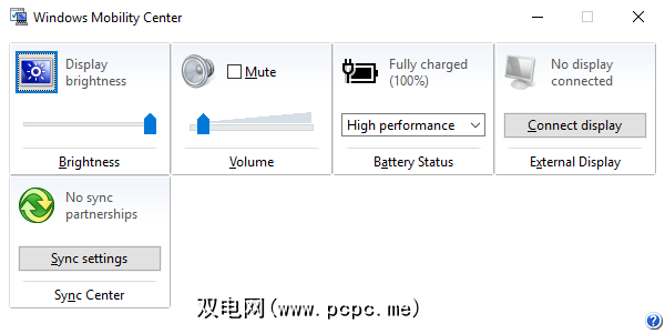 简单地说,Mobility Center需要与便携式设备有关的所有系统设置,并在一个窗口中显示。至少,它显示亮度,音量,电池和外部显示器的选项。某些系统可能具有更多选项。